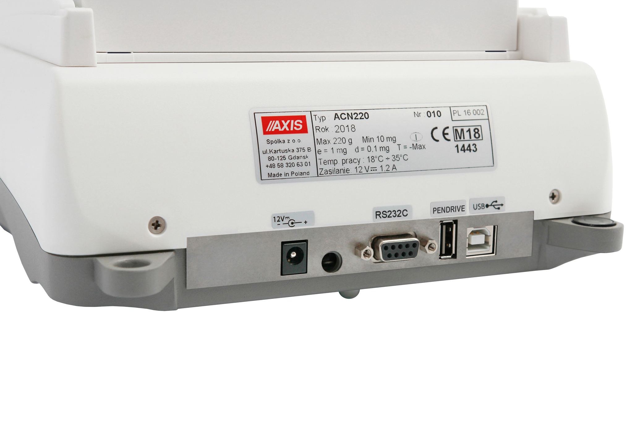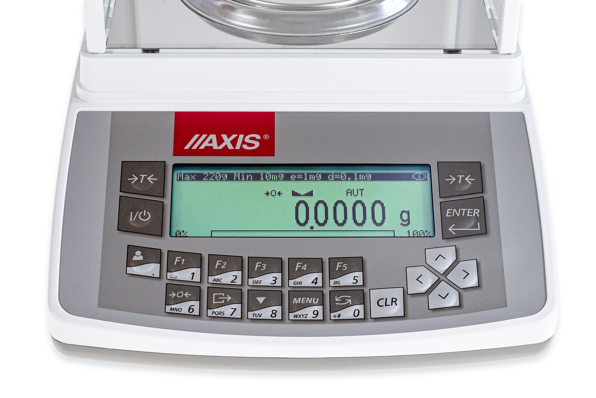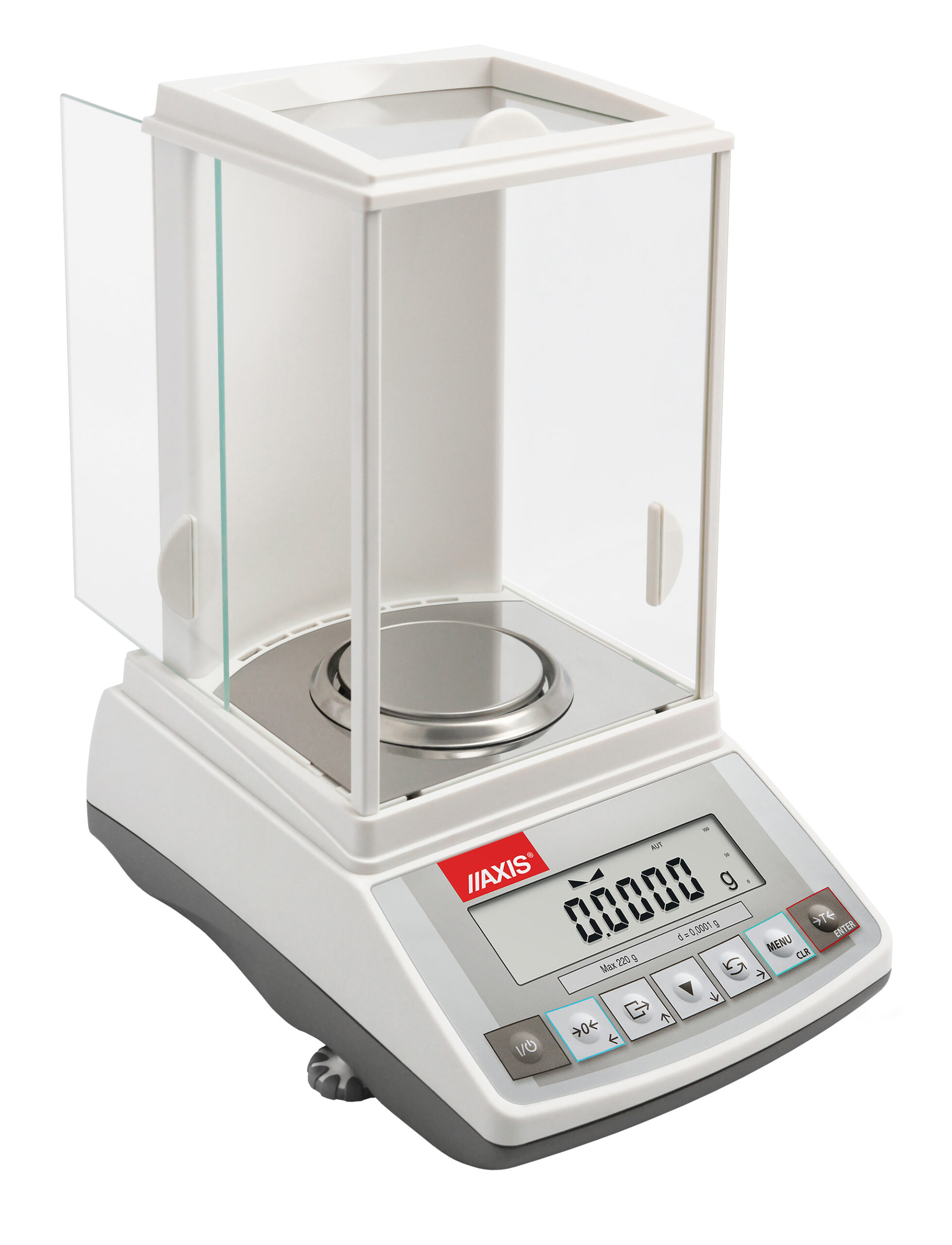 Balanza Analítica Axis, modelo ACN 220, capacidad 220g por 0,1mg, con calibración interna automática, Clase I. Display grafico LCD de alta visibilidad, con puertos de comunicación RS232C y USB A y B. puede ser usada en aplicaciones de metrología legal si se solicita con declaración de conformidad, cuenta con certificación CE, cumple GLP, cuenta con funciones especiales para conteo de piezas, peso por porcentaje, acumulación de pesadas. Diseñada para uso en laboratorios, farmacias, joyerías e institutos de investigación.