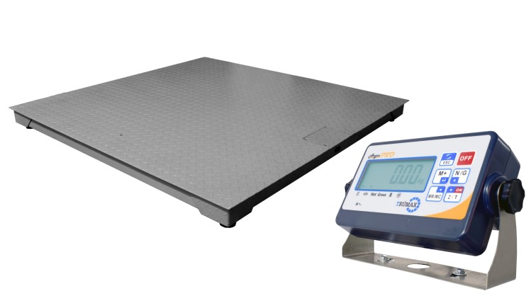 Bascula de bajo perfil Trumax, con aprobación de modelo – Cumple Res. 77506 de la SIC (siempre y cuando sea solicitado con Declaración de conformidad), estructura tubular pintada cubierta de lamina alfajor, con 4 celdas de carga tipo viga (shear beam), con patas niveladoras. Indicador solo peso en ABS, display tipo LCD de alta visibilidad, batería recargable. Función de acumulación de pesadas. Capacidades disponibles: 600 / 1500kg x 200 / 500g; 1500 / 3000kg x 500 / 1000g; Tamaños disponibles: 100 X 100cm, 120 X 120cm y 150 X 150cm.