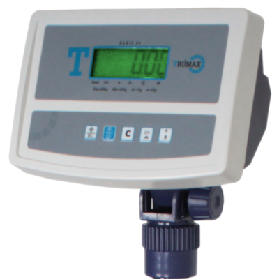 Bascula solo peso Trumax con estructura tubular de 30 x 40 cm, cubierta en acero inoxidable calibre 20, celda de carga monobloque y topes para sobrecarga. Indicador solo peso fabricado en ABS de alta resistencia, display LCD retro-iluminado. Función de acumulación de pesadas. Capacidad máxima 60kg x 10g.