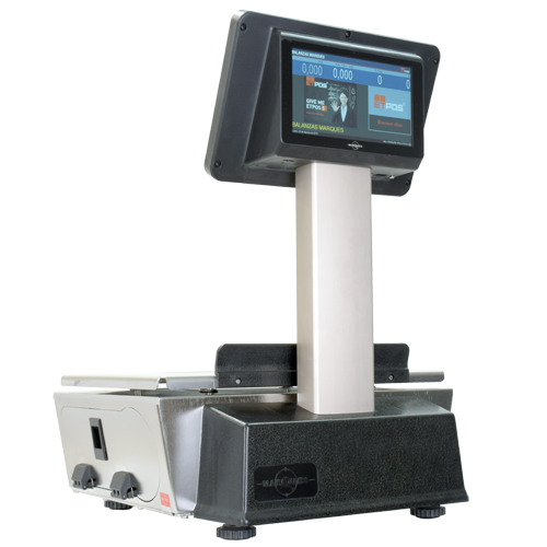 Balanza de mesa BM5 Junior de Marques, disponible en versión plana y de doble cuerpo (con nivel digital), construida en acero inoxidable, diseño compacto y confiable de alto rendimiento, conectividad Wi-Fi, interfaz moderna e intuitiva, 2 pantallas de alta resolución, pantalla táctil de 10” para el operador y de 7″ para el cliente (con gestión de publicidad), incluye software ETPos Light, fácil integración con aplicaciones de software mediante servidor web, permite interconectar hasta 99 balanzas en red, la cantidad de vendedores y productos es configurable de acuerdo a su necesidad, formatos de impresión programables para ticket y etiqueta, programación y configuración desde Balanza o PC, cuenta con puertos USB, RS-232, Ethernet, conexión al Cajón de dinero, etc. Capacidad máxima 15 /30 kg x 5 / 10g.