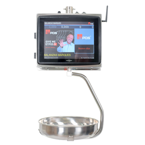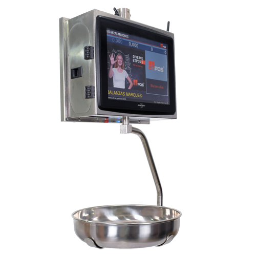 Balanza Colgante BM5 XS de Marques, construida en acero inoxidable, diseño compacto y confiable de alto rendimiento, conectividad Wi-Fi, interfaz moderna e intuitiva, 2 pantallas de alta resolución, pantalla táctil de 12” para el operador y de 10″ para el cliente (con gestión de publicidad), incluye software ETPos Light y plato redondo (opcional software ETPos Pro y plato italiano), fácil integración con aplicaciones de software mediante servidor web, permite interconectar hasta 99 balanzas en red, la cantidad de vendedores y productos es configurable de acuerdo a su necesidad, formatos de impresión programables para ticket y etiqueta, programación y configuración desde Balanza o PC, cuenta con puertos USB, Ethernet, etc. Capacidad máxima 15kg x 5g.