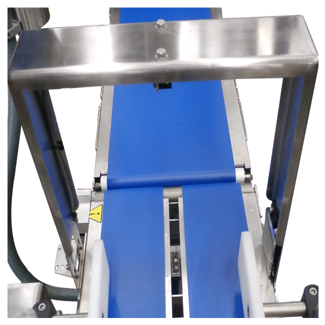 Equipada con pesaje dinámico/estático y opción de control de llenado “℮”, garantiza el cumplimiento de estándares metrológicos. Su sistema de rechazo opcional (Air-jet®, pistón neumático o palas mecánicas) permite clasificar productos por peso, detectar metales (integrado con detectores) o identificar artículos no registrados. La estructura en acero inoxidable AISI 304L y bandas FDA aseguran durabilidad e higiene en entornos exigentes.