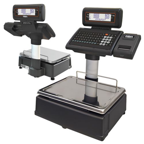 Balanza liquidadora Dibal con impresora de ticket, y/o etiquetas construida en ABS de alta resistencia, doble display LCD reto-iluminado para comprador y vendedor, 10 vendedores, hasta 5000 productos, 40 x 2 teclas directas para productos, interconexión de hasta 16 balanzas, formatos de impresión programables para ticket y etiqueta, cambio fácil de rollo, impresión de logos, código de barras EAN 13, programación y configuración por PC. Doble rango medición 30kg y 15kg.