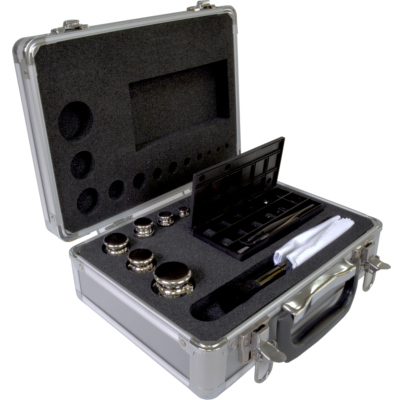 Pesas patrón clase E2 de precisión alta, destinadas para la verificación o calibración de pesas de clase F1 e inferiores con instrumentos de pesaje de clase de exactitud especial. Certificables, antimagnéticas, fabricadas en acero inoxidable con acabado de brillo espejo, de diseño cilíndrico hasta 1g. Las pesas inferiores a 1g son el laminas poligonales, que permiten verificar su peso por medio de su forma, Sin cavidad de ajuste, alta resistencia a la corrosión.