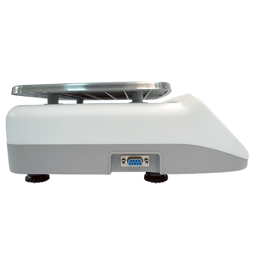 Balanza solo peso de alta precisión con comunicación RS232, fabricada en ABS de alta resistencia, display LCD de dígitos blancos con luz de respaldo azul, plato en acero inoxidable, batería recargable con adaptador. Con función para conteo de piezas por muestra, limites de peso. Capacidad disponibles 3000g x 0.1g.