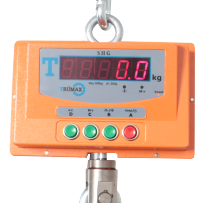 Leer másLa bascula tipo gancho o dinamómetro marca Trumax cuenta con numerosas funciones que facilitan las labores del pesaje requerido en el sector industrial como acumulación de pesadas, congelamiento de peso, auto apagado etc. Su fácil manejo y precisión en la pesada son características importantes que permiten que estas basculas trabajen en ambientes comerciales y/o industriales manejando las funciones mencionadas a través del control remoto o directamente en el gancho. Capacidades 50kg, 150kg, 300kg y 500kg.
