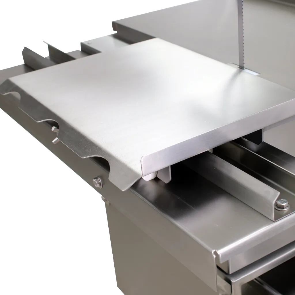 Leer másLa Sierra Carnicera ST-295-AI es una máquina robusta y eficiente, diseñada para satisfacer las demandas de carnicerías y establecimientos de procesamiento de alimentos. Construida completamente en acero inoxidable, garantiza durabilidad y facilita la limpieza, manteniendo altos estándares de higiene. Equipada con una cinta de 295 cm y un potente motor de 1.5 HP, permite cortes precisos en carnes con o sin hueso. Su diseño incorpora una mesa desmontable, simplificando el mantenimiento. Para la seguridad del operador, cuenta con un sistema de arranque por botonera y sensores de seguridad que evitan encendidos accidentales. Además, incluye un regulador de ancho de corte y un bistekeador de último corte, optimizando la eficiencia en cada operación.